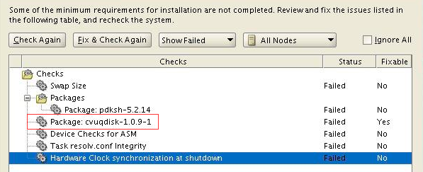 Linux系统上安装GI检查先决条件时提示缺少cvuqdisk 包