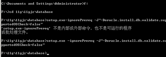 F: 11g\11gjz\database>setup.exe -ignorePrereq -J"-Doracle.install.db.validate.supportedOSCheck=false"