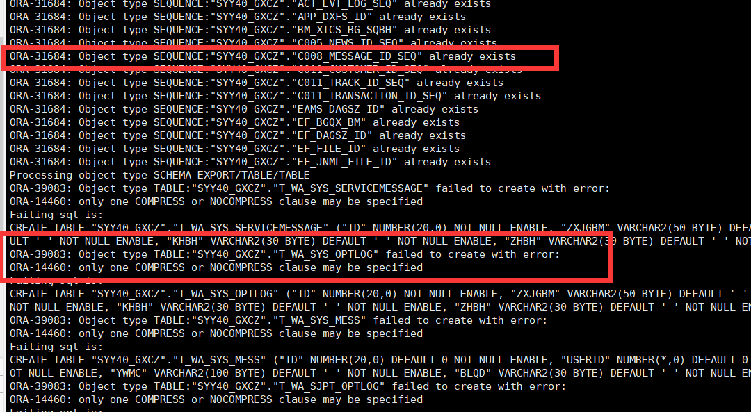ORACLE impdp导入 ORA-14460