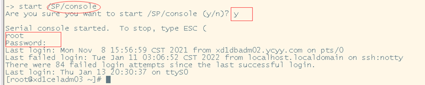 方法有两种,一种是通过使用Exadata ILOM remote console登陆,另一种,可以先通过SSH登录 ilom,然后在提示符下执行 start /SP/console ,输入root及密码即可登录