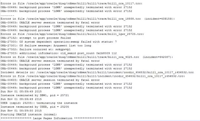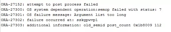 这里显示LGWR进程在POSTPROCESS时,调用semop进程出现状态7的错误,文字描述是Argument list too long,对应的变量是E2BIG。