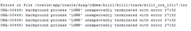 此错误是前台进程等待LGWR返回结果,但是LGWR一直没有返回,前台进程认为LGWR出现致命的错误。