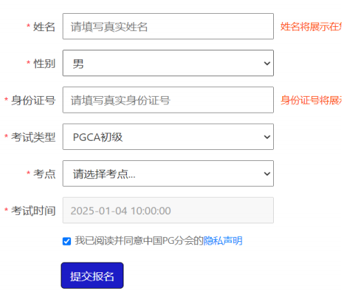 (二)第二步(报名):登录/注册后进入考试报名页面,填写报名信息